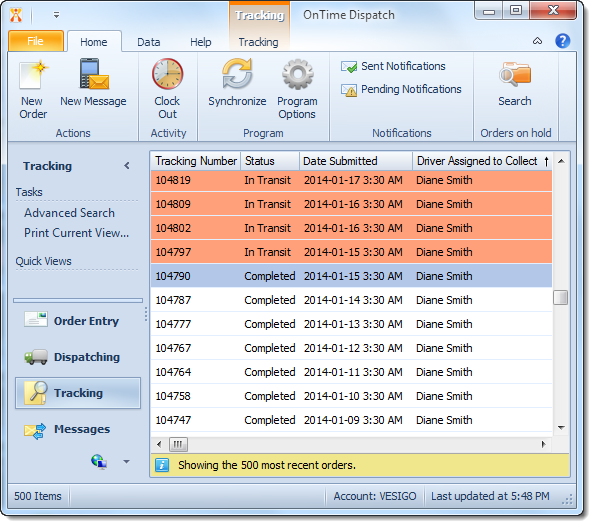 Tell us what you think of the Tracking view @OnTimeSoftware or at Facebook.com/OnTimeDeliverySystem.